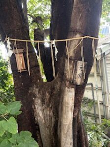 いま、JR「御茶ノ水駅」のそば、聖橋のたもとには、しめ縄を巻き付けた 大きなムクノキがそびえ立っている。その幹には、「元宮」を示す木札と神札が貼られている。かつて太田姫稲荷神社の御神木であったムクノキである。